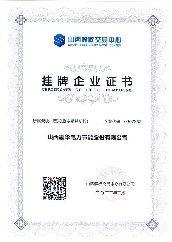 山西耀華電力節(jié)能股份有限公司是國內第一家提出谷期電集中儲能蓄能的高新技術企業(yè),其主營業(yè)務:電力市場購售電交易運營、電力設施安裝檢測運維、 低谷電采暖設備的研發(fā)、生產、安裝、銷售及運行服務于一體。公司成立于1996年,落座于山西省太原市,現有股權代碼在晉興板上市的專精特新企業(yè),中國建設科技自主創(chuàng)新優(yōu)勢企業(yè),山西省節(jié)能協會理事單位,擁有自主知識產權,獲得國家多項專利,參編了電采暖國家標準(JC/T60008-2021)和主編了山西省地方標準(DBJ04/T291-2012)。擁有國家發(fā)明專利11項,軟件著作權6項。其中“大數據遠程集中監(jiān)控運維服務平臺”早在2019年就在河北、天津、山西等多個煤改電地區(qū)投入試用,節(jié)能效果非常顯著,運維方便快捷,用戶滿意。